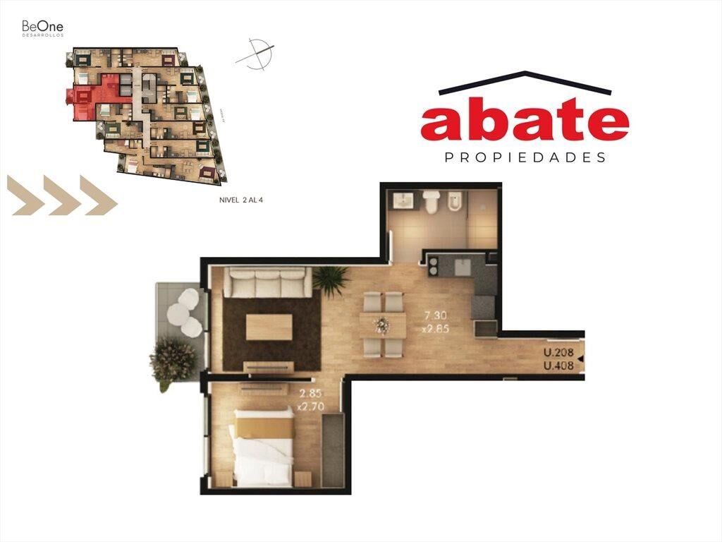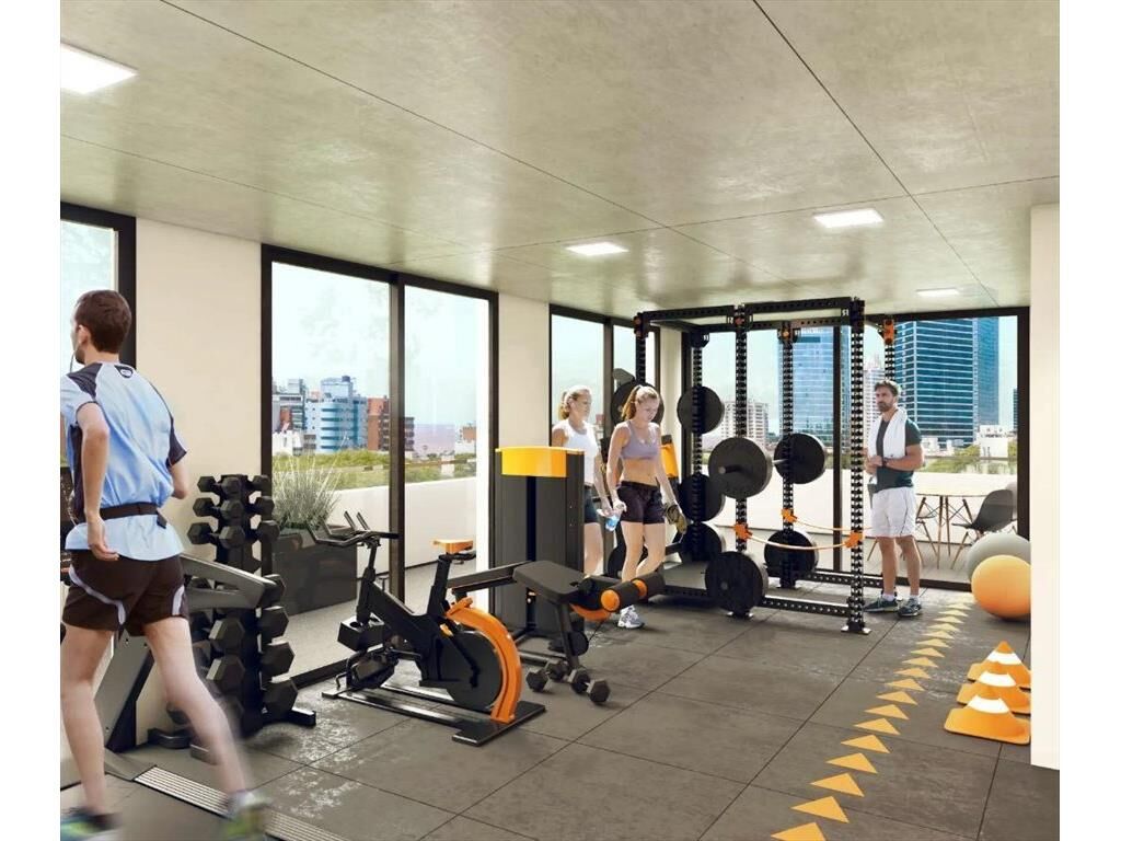 El apartamento cuenta con un dormitorio y un baño completo. Además, la unidad cuenta con una salida a una terraza privada, lo que permite disfrutar del aire libre sin salir de casa.