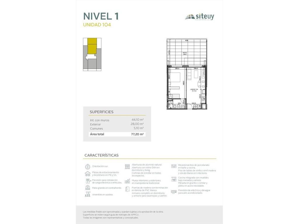 -Espacios de living y dormitorios con previsión eléctrica y sanitaria para equipos de aire acondicionado, pavimento vinílico y grandes aberturas de aluminio, protegidas con cortinas de enrollar en todos los ambientes.