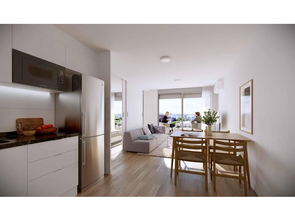 Al ingresar a esta unidad, te encuentras con un espacio integrado que combina cocina y living, La cocina, equipada con muebles bajo mesada y aéreos, cuenta con una mesada de granito que se integra perfectamente al espacio del living. Desde el living, se accede a un balcón, ideal para disfrutar del aire libre.