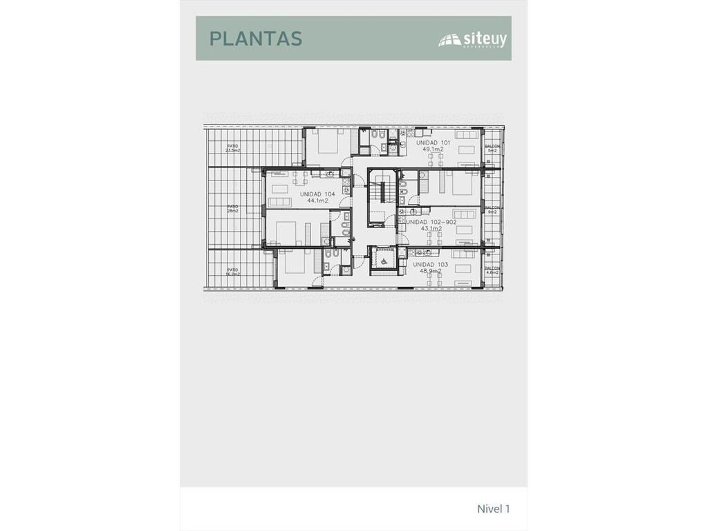 -Las unidades cuentan con terrazas o patios exclusivos, barandas metálicas verticales en balcones y divisorios entre balcones.
