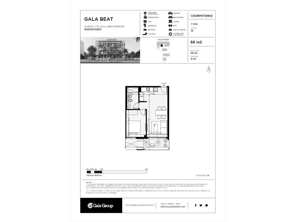 Cocina integrada al living comedor que se extiende a la terraza.1 Dormitorio. Baño completo.