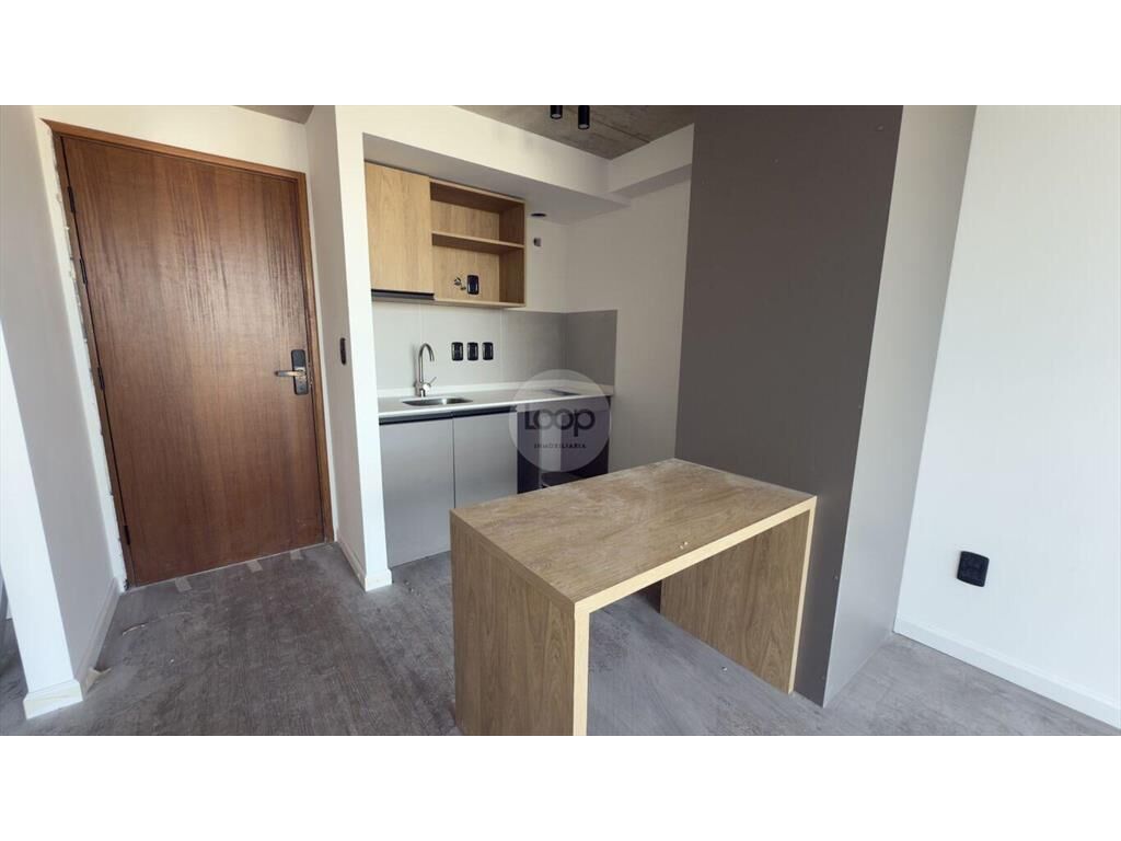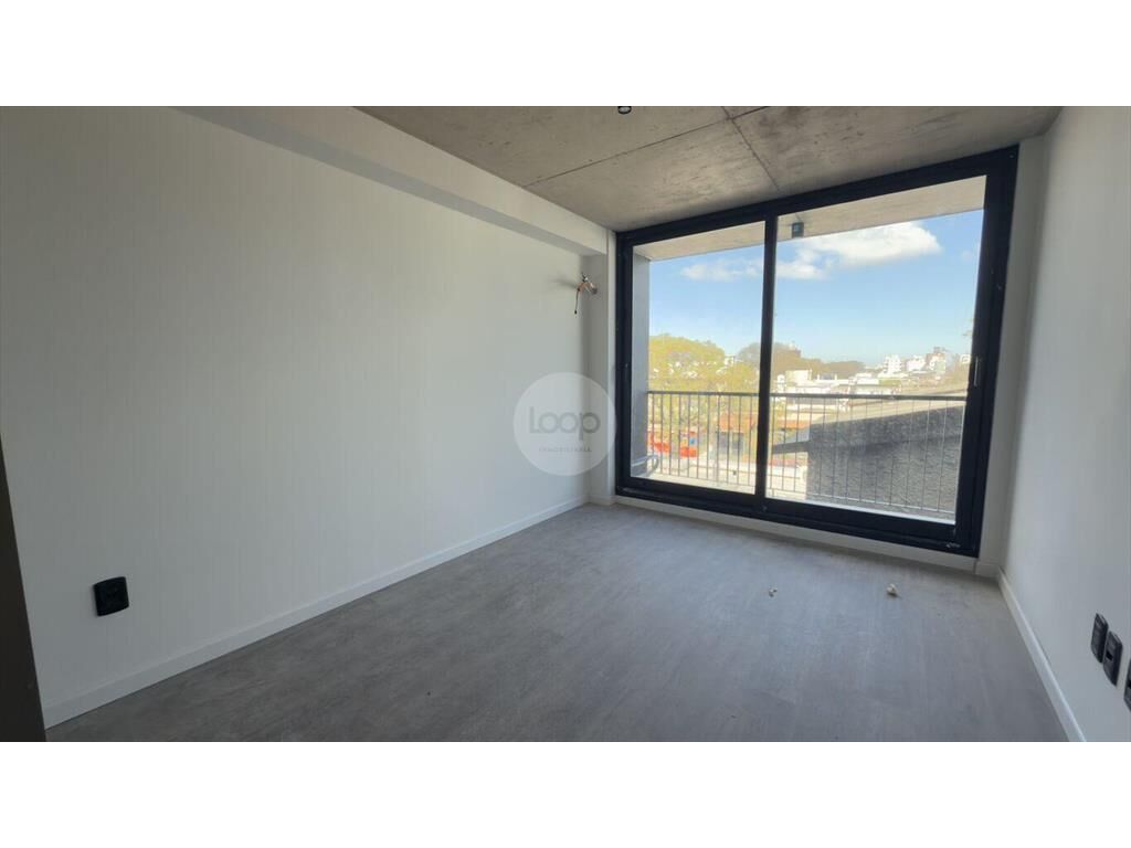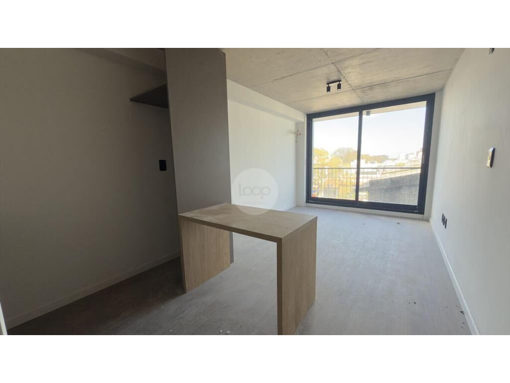 Cuenta con living comedor con cocina semi integrada, con una mesa incorporada dividiendo los ambientes y salida a balcón. Dormitorio cómodo, con placard y también salida a balcón. En la distribución existe un espacio cerrado con conexión para lavarropas y es el espacio previsto también donde va instalado el calefón. Baño completo de calidad, con muy buen gusto.