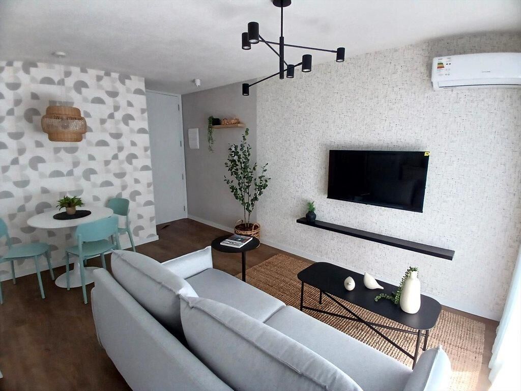 Apartamento living comedor con acceso a terraza de uso exclusivo, cocina integrada equipada con mueble bajo mesada, mueble aéreo, anafe, campana y horno de empotrar. Dormitorio con Placar con hoja batiente. Baño completo.