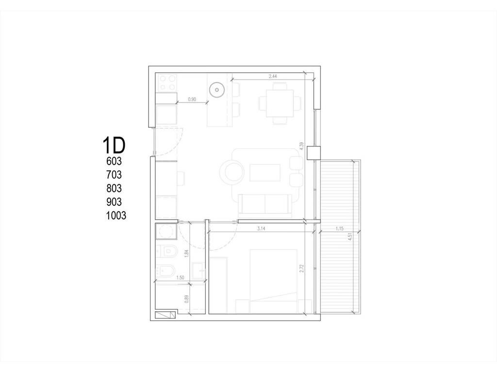 Living comedor con acceso a terraza de uso exclusivo, cocina integrada con bajo mesada. Baño completo. Dormitorio con acceso a terraza.