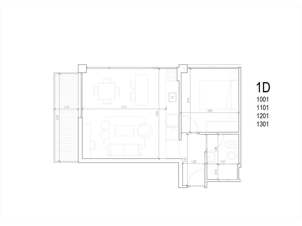 Living comedor con acceso a terraza,cocina integrada con bajo mesada. Baño completo. Un dormitorio.
