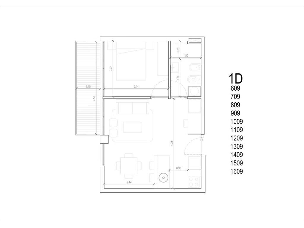 Living comedor con acceso a terraza,cocina integrada con bajo mesada. Baño completo. Un dormitorio.