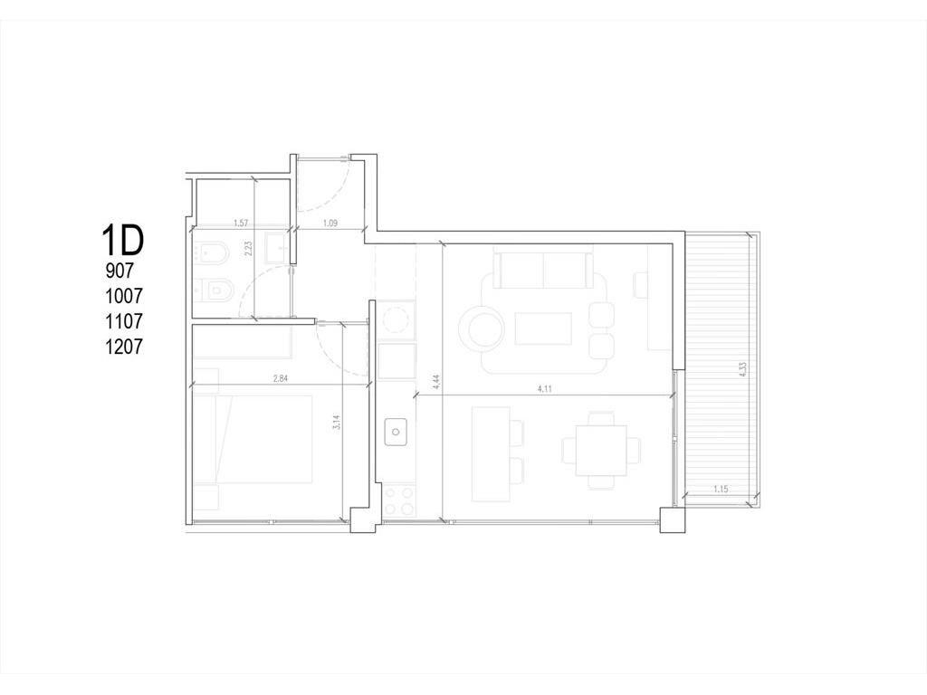 Living comedor con acceso a terraza,cocina integrada con bajo mesada. Baño completo. Un dormitorio.