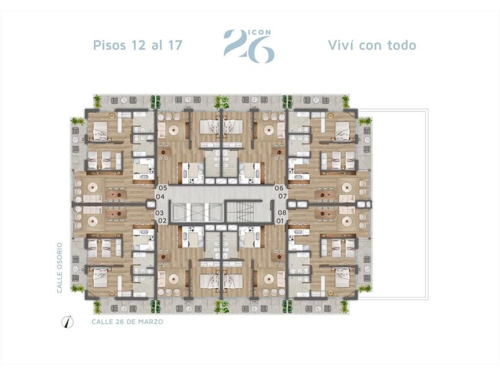 Amplio apartamento en piso alto que combina la sala de estar con el comedor, y cocina integrada.1 Dormitorio. Estos ambientes se extienden hacia la terraza generando mayor amplitud y un espacio extra de esparcimiento. Baño Completo.
