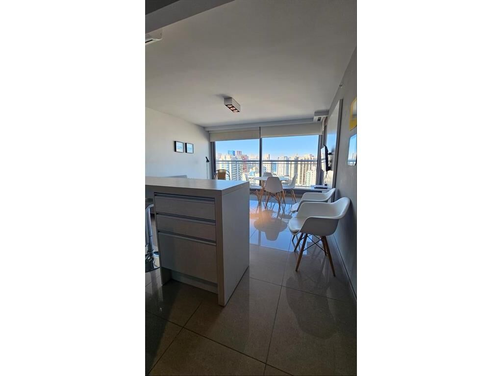 1 dormitorio en suite y además toilette, cocina integrada de gran tamaño, una terraza absolutamente disfrutable con espacio y ancho para mesa y sillas, que da a la playa brava de Punta del Este.