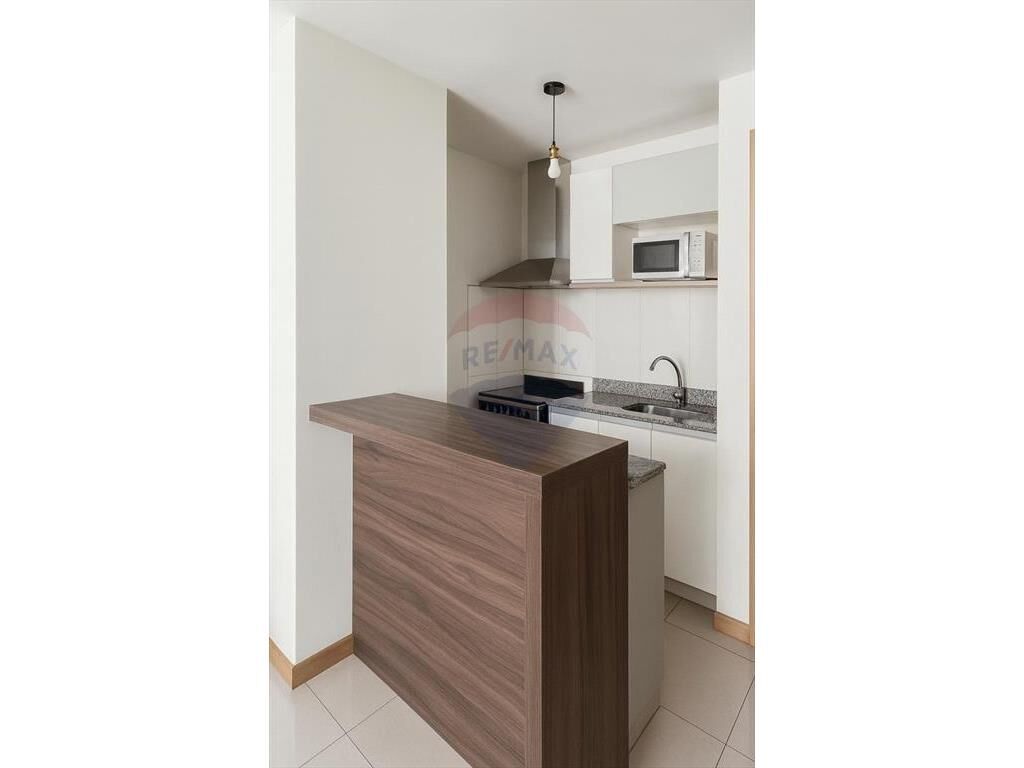 Living comedor con cocina integrada con barra, placares aéreo y bajo mesada de muy buenas terminaciones. Terraza lavadero. Baño completo, mampara. Un dormitorio con excelente placar, con acceso a balcón.
