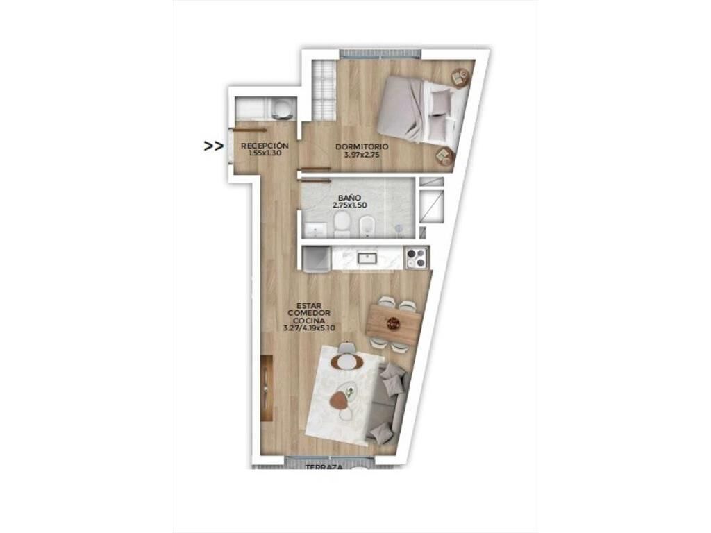 211 a 1011) 45,80 m2 área individual + Terraza 4,00 m2