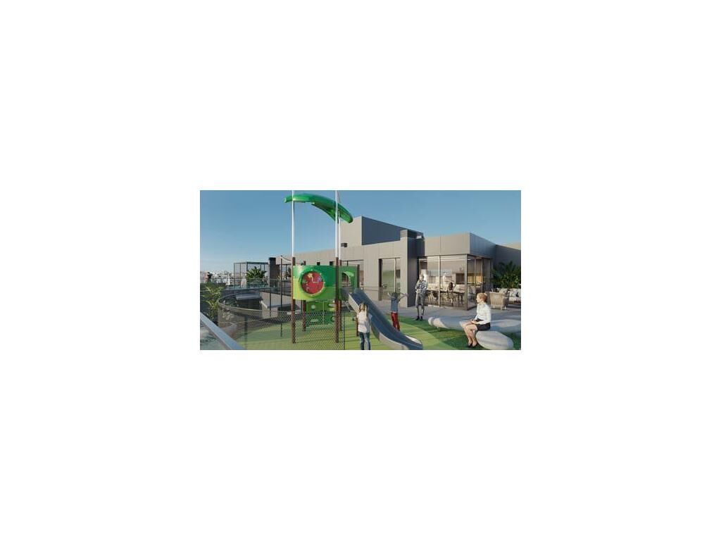 Sector de expansión con equipamiento fitness exterior y mini cancha.