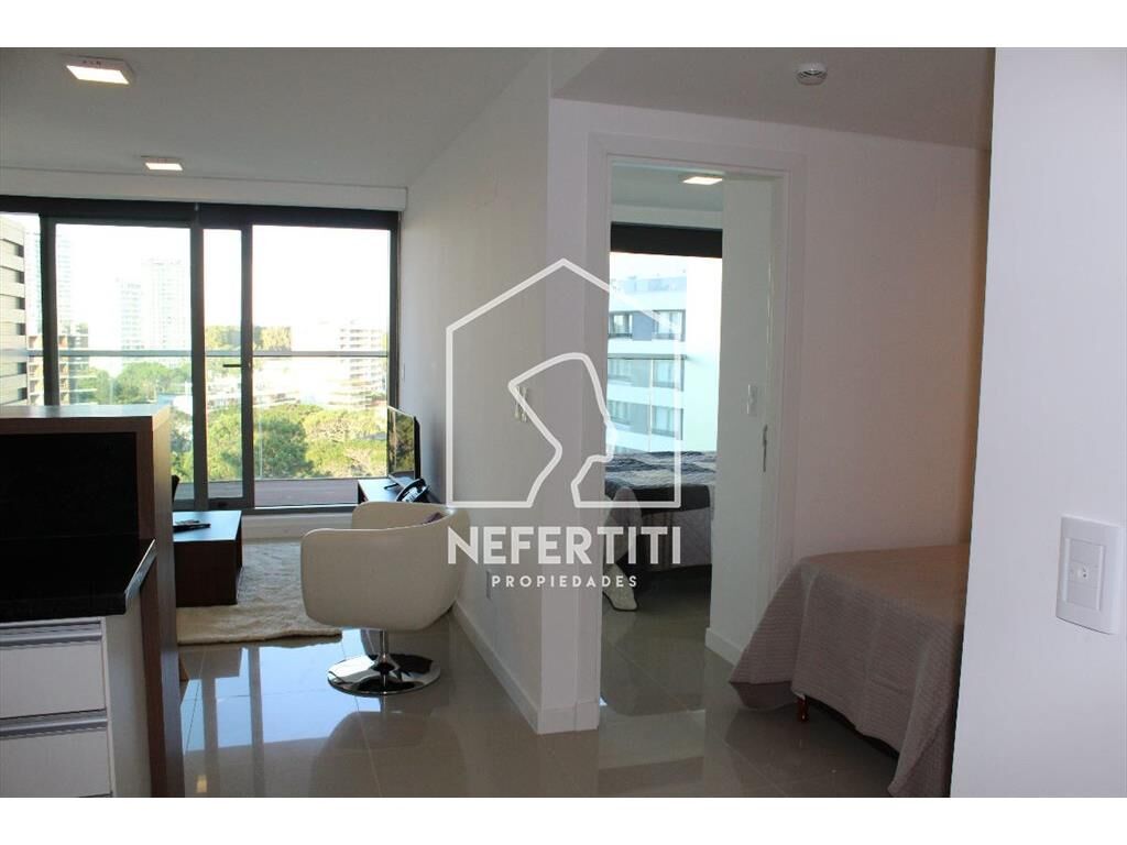 Apartamento un dormitorio más plus en Edificio CHRONOS. Baño completo con mampara y accesorios. Cocina semi integrada con barra, living - comedor luminoso. Balcón al frente con deck ecológico