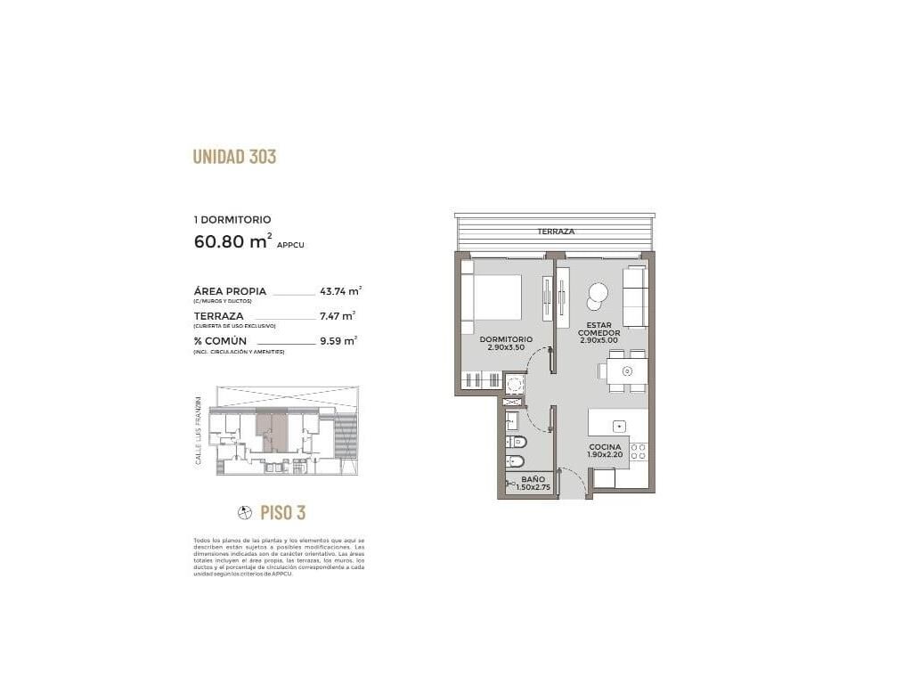La unidad se ubica en el tercer piso al lateral con orientación Norte. Una planta cómoda y funcional, terminaciones de categoría. Living comedor con cocina semi integrada salida al balcón, un dormitorio con salida al balcón y un baño.