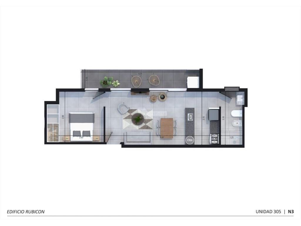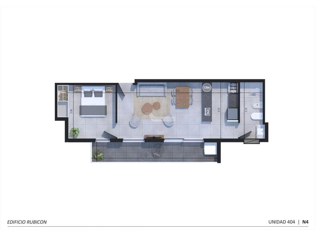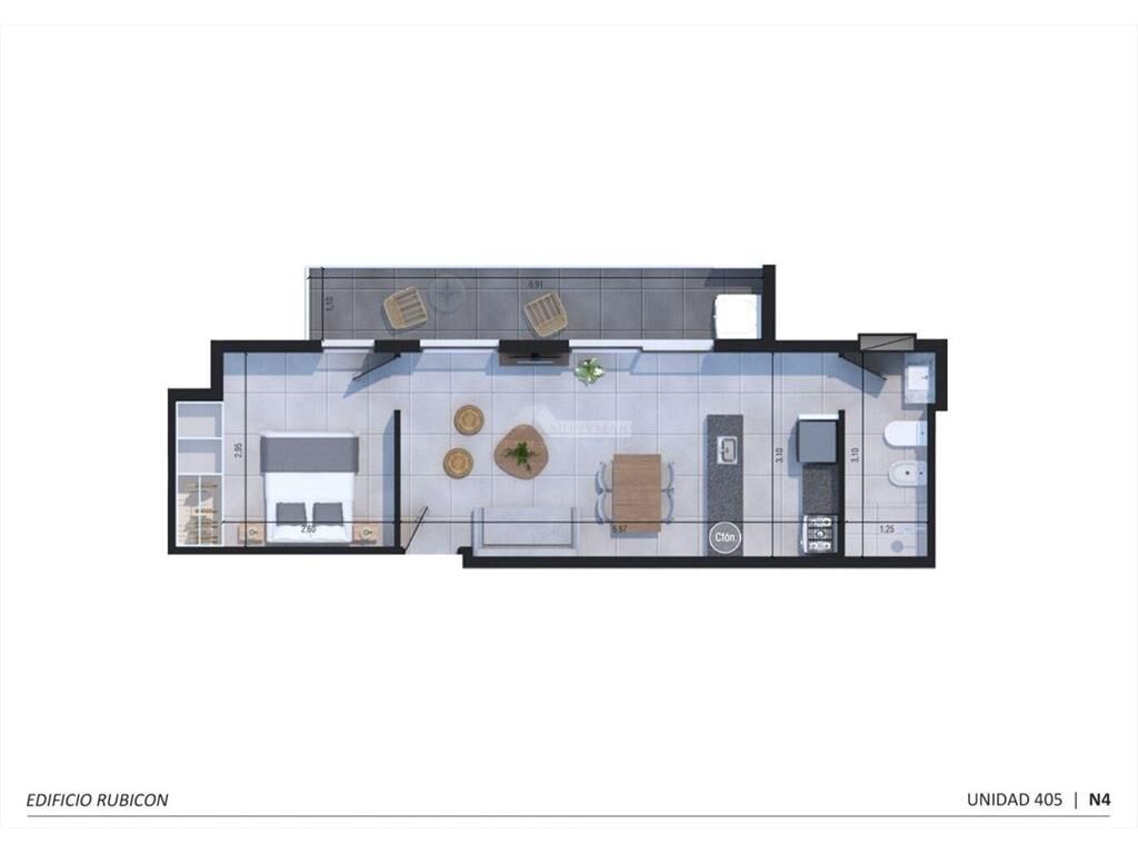 METRAJE: 38,5m área propia + 7,7m terraza = 46,2m totales