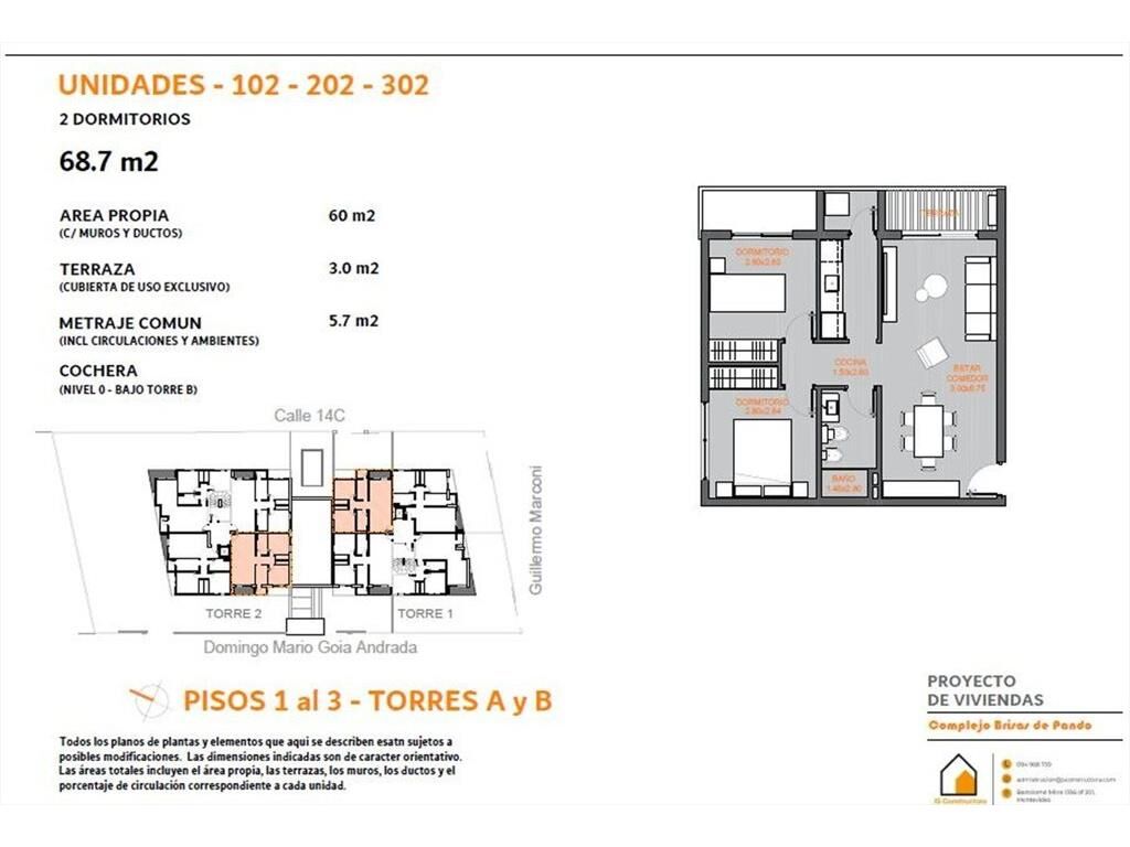 El complejo Brisas de Pando comienza sus obras el próximo año 2026, tiene fecha prevista de entrega a fines del año 2027, son dos torres de edificios, en total 28 apartamentos de uno y dos dormitorios, ascensor en cada torre, cocheras, piscina, parrillero en planta baja, gimnasio y barbacoas con solarium en azoteas. Predio cerrado con circuito de videovigilancia.