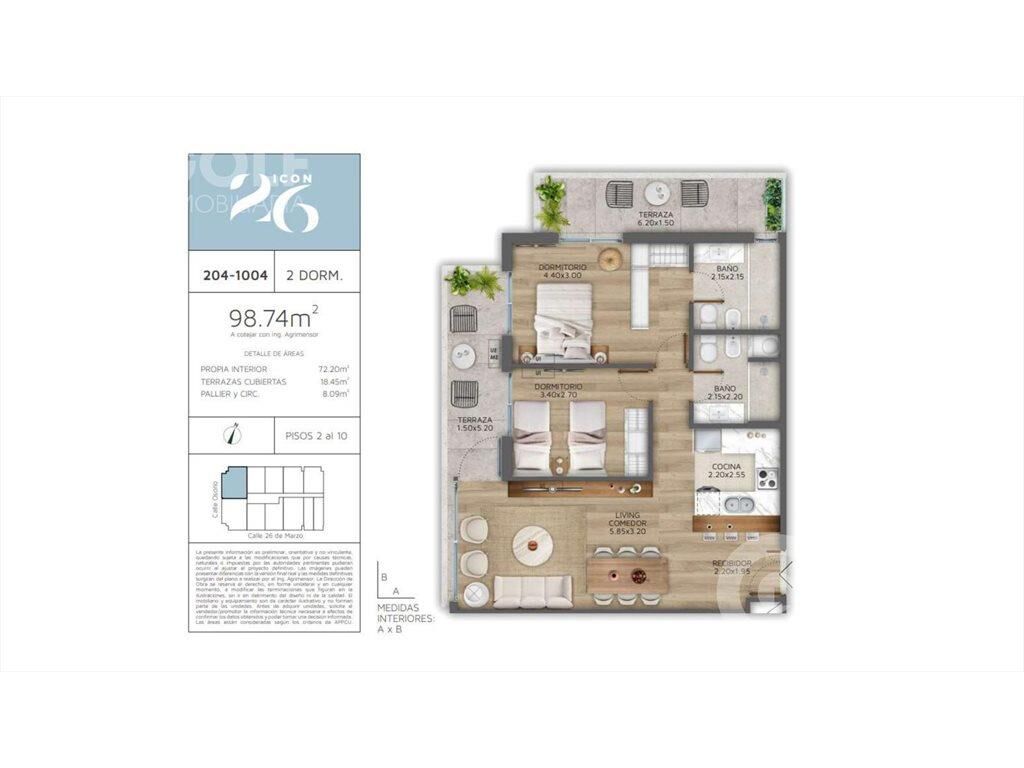 Venta Apartamento 2 dormitorios con terraza en Pocitos