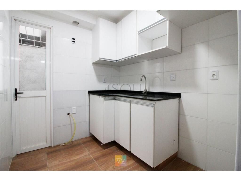 - Cocina reciclada con muebles aéreos y bajo mesada, campana extractora y salida a pequeño patio.