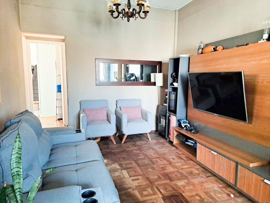 Luminoso living-comedor con pisos de madera en buen estado que requiere mantenimiento,
