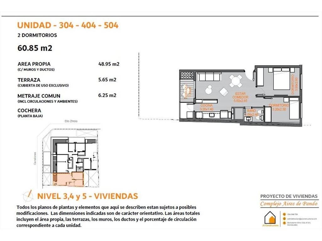 El complejo Aires de Pando comienza sus obras el próximo año 2026, tiene fecha prevista de entrega a fines del año 2027, es una torre con 2 locales comerciales y 20 apartamentos de uno, dos y tres dormitorios, ascensor, cocheras en planta baja y subsuelo y barbacoa con solarium en el roof top.