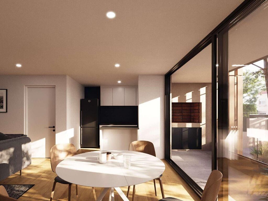 Al ingresar se encuentra el living comedor con cocina integrada equipada con muebles bajo y sobre mesada.