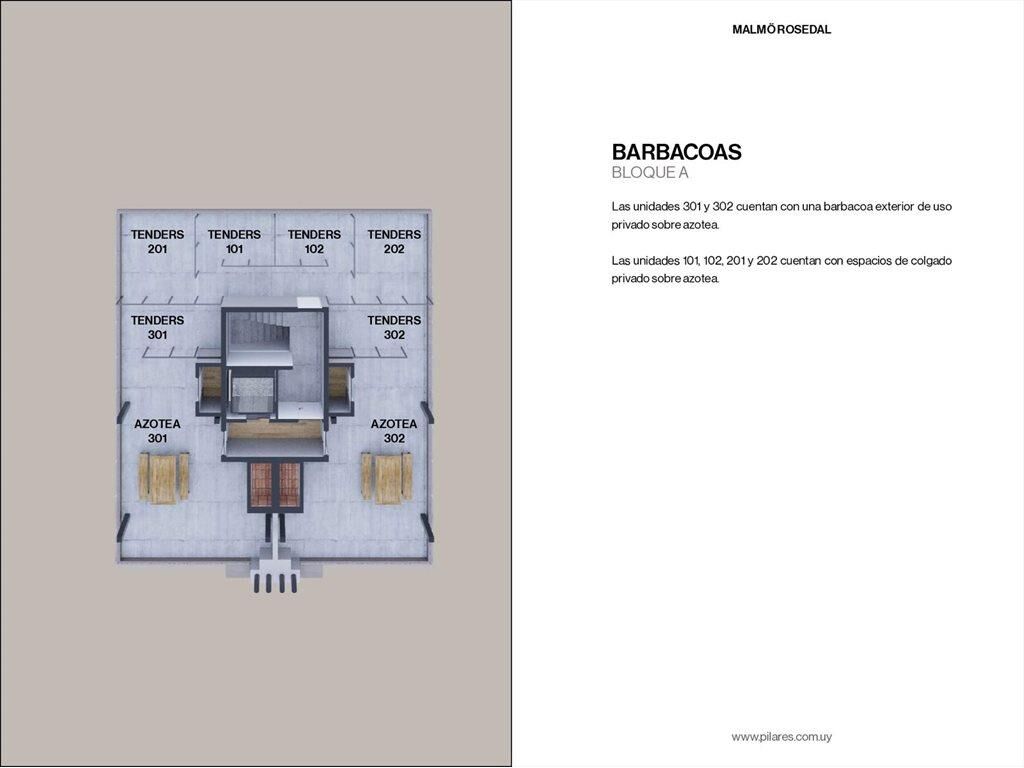 BLOQUE B - FONDO- 3 APARTAMENTOS de 1 Dormitorio- 2 APARTAMENTOS de 2 Dormitorios- 1 APARTAMENTO de 2 Dormitorios con barbacoa privada - Espacio de tenders generales en azotea