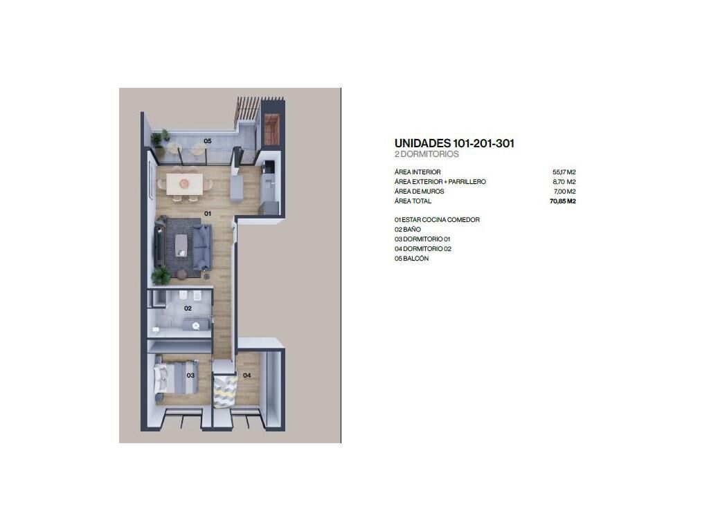 Este ambiente se extiende a una cómoda terraza al frente con parrillero de uso exclusivo.