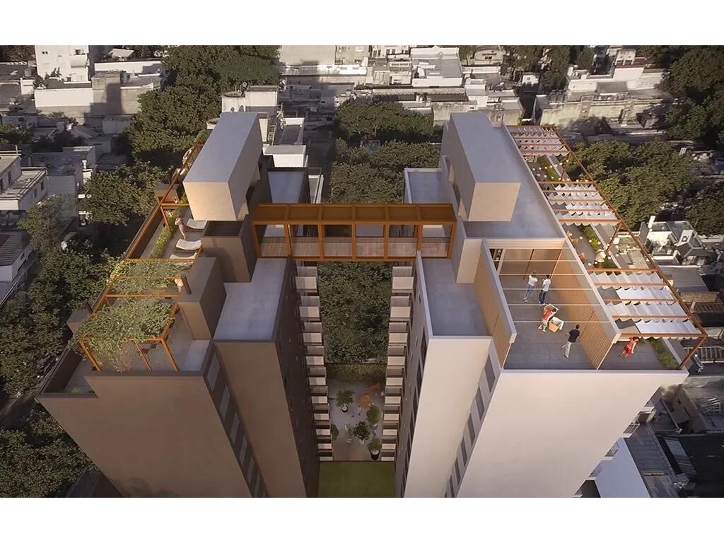 Ambos edificios tienen una altura de 11 pisos y reúnen un total de 81 apartamentos con tipologías de 1 a 3 dormitorios. La torre Norte cuenta con 38 apartamentos sobre la Calle Canelones, mientras la torre Sur presenta 43 unidades; de las cuales su mayoría cuenta con vista al mar. Todas las unidades tienen terrazas y amplios ventanales que otorgan mucha luminosidad a los ambientes. 01 Del Centro cuenta con un total de 43 garages y cocheras ubicadas en la Planta Baja y Subsuelo del edificio. Además, la azotea de ambas torres cuenta con un amplio sector de amenities.