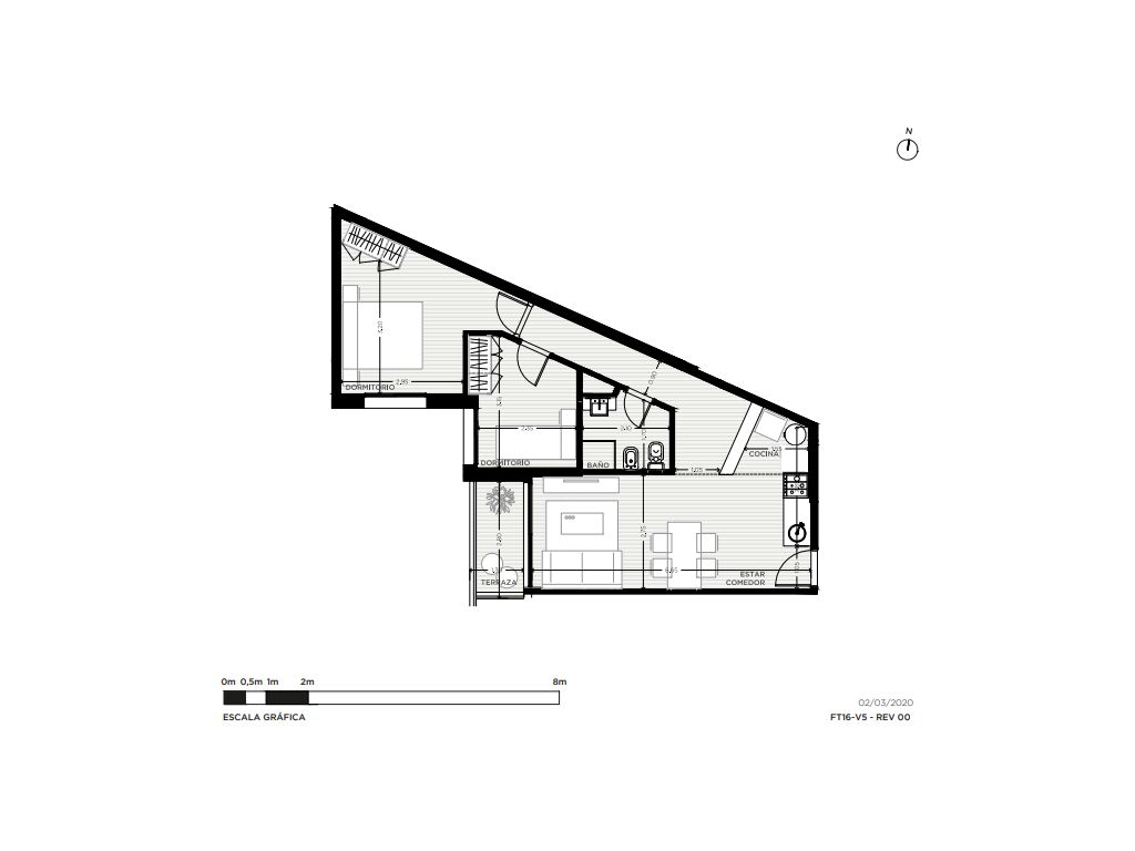 Amplio apartamento de 2 dormitorio en primer piso con orientación oeste. Living comedor con cocina semi integrada al contrafrente con salida a la terraza.