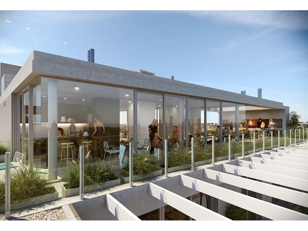 Living comedor con acceso a terraza de uso exclusivo. Cocina integrada con muebles sobre y bajo mesada, anafe vitrocerámico con 4 hornallas, campana instalada, y previsión para horno eléctrico empotrado. Baño completo. Dos dormitorios.