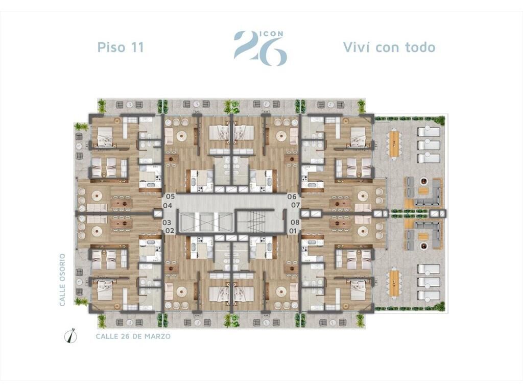 Dormitorio principal con vestidor, baño en suite y terraza privada. Segundo dormitorio con salida a segunda terraza. Baño Completo.
