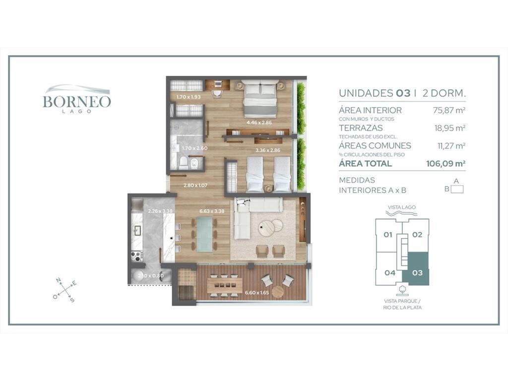 Borneo Lago es ideal para quienes buscan vivir en un entorno natural, tranquilo y cerca de la ciudad. Está ubicado entre el Parque Roosevelt y el Lago Calcagno, una zona perfecta para familias jóvenes que quieren más aire libre, verde y calidad de vida.