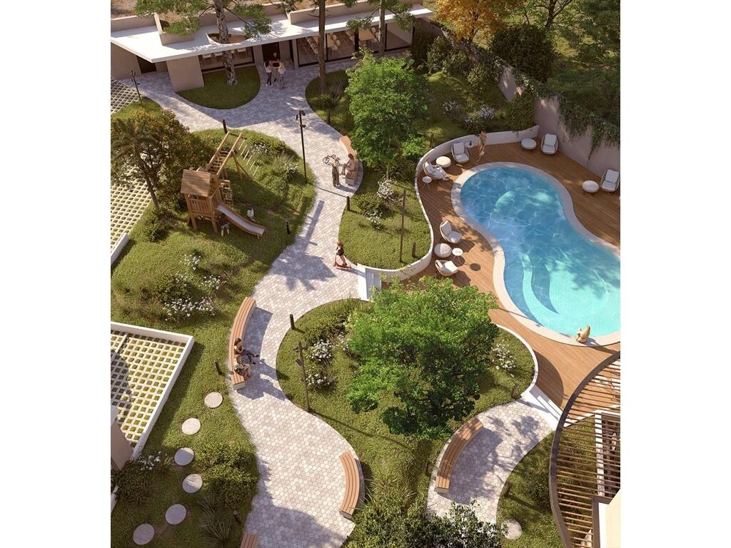 Amenities: Cowork, parking para bicicletas, gimnasio, parque verde y paisajismo, piscina, sum con parrilleros, laundry, solárium y juegos para niños
