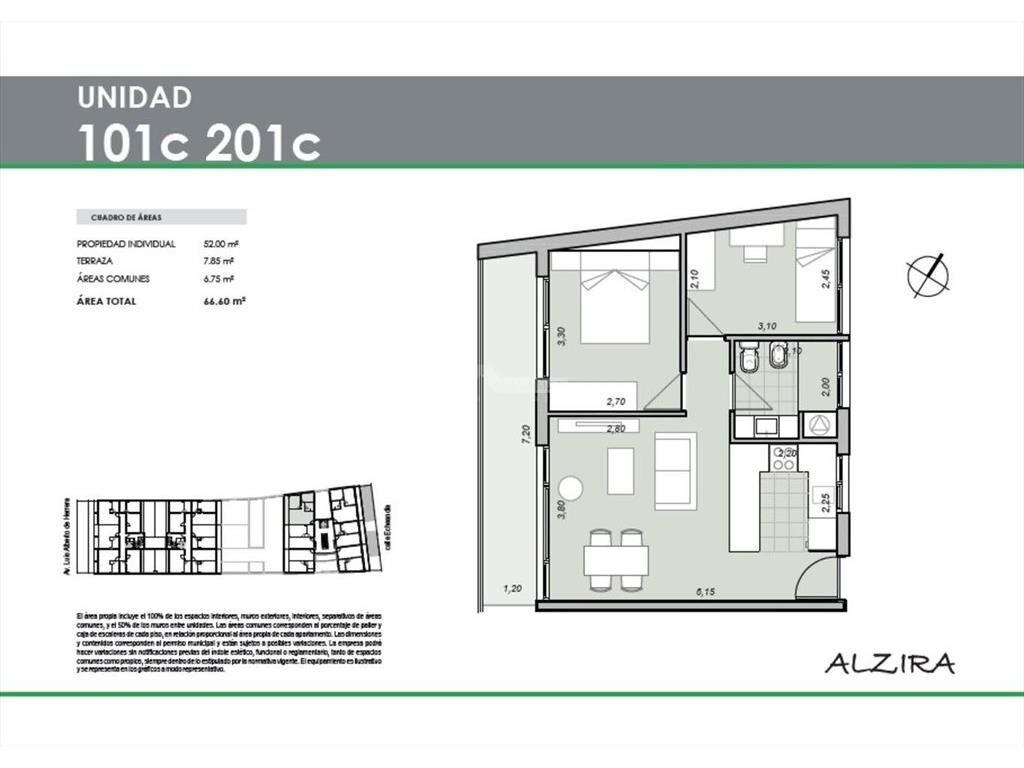 METRAJE: 52m área propia + 6,75m área común + 7,85m área terraza = 66,60m totales.