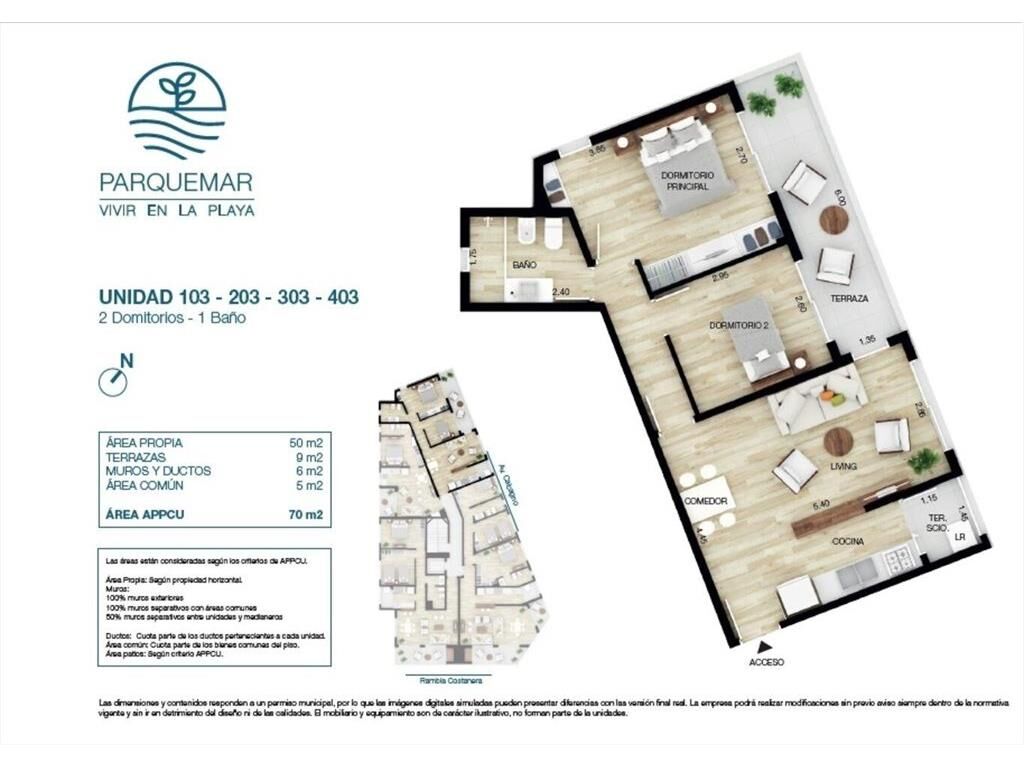 RAMBLA COSTANERA Y AVENIDA CALCAGNO ... EDIFICIO PARQUEMAR... PRIVILEGIADA UBICACIÓN FRENTE AL MAR... A PASOS DE LA PLAYA...RODEADO DE SERVICIOS Y TAMBIÉN NATURALEZA... A ESTRENAR NOVIEMBRE 2025... AL FRENTE. Living comedor, 2 DORMITORIOS con placares con salida a TERRAZA de uso exclusivo, cocina integrada con muebles aéreo y bajo mesada, 1 baño completo. Cuenta con calefacción por losa radiante, previsión para aire acondicionado, conexión para lavarropas y gas por cañería para anafe y ACS. COCHERA PARA 1 AUTO. Los amenities del edificio: SALÓN DE USOS MÚLTIPLES CON PARRILLERO, JARDÍN, LAUNDRY, CCTB Y CERCO PERIMETRAL.