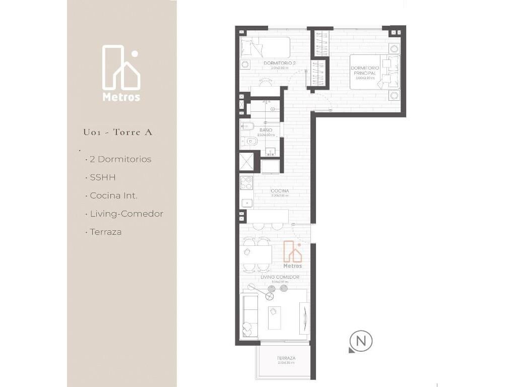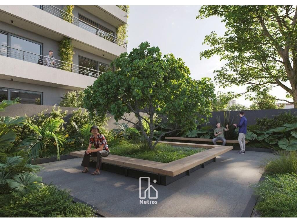 2 dormitorios • Living comedor • Cocina integrada + Barra desayunador • Baño completo • Garaje + Box opcional