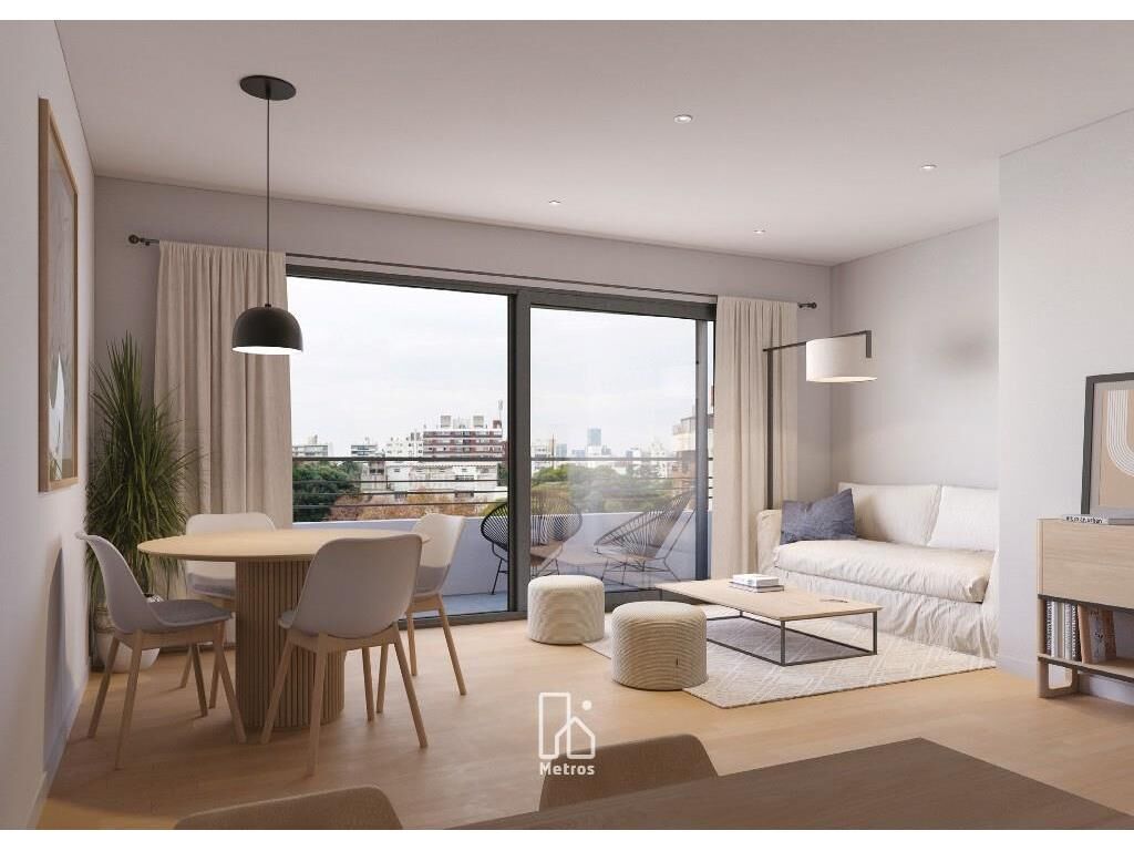 La cocina se integra al living comedor con una barra desayunador. Cuenta con 2 dormitorios amplios y con placards.