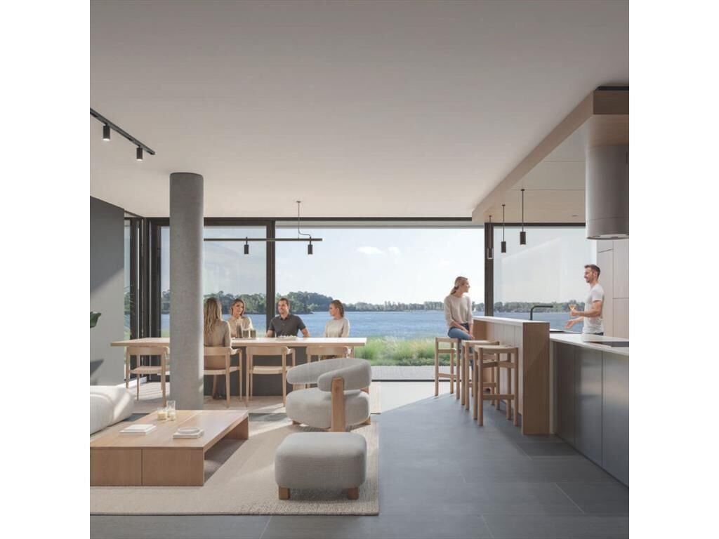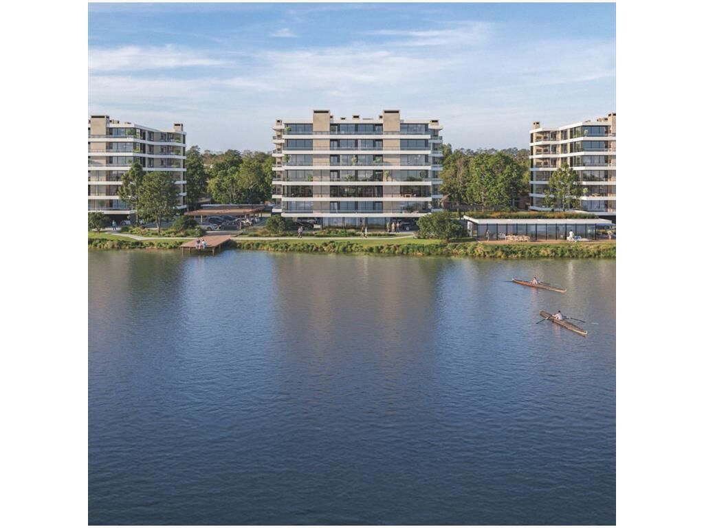 Sobre la costa del Lago Calcagno, tres torres de diseño exclusivo con vistas abiertas, piscina exterior, muelle privado, amplios espacios comunes y una conexión única con la naturaleza.