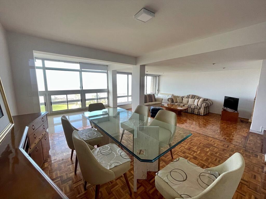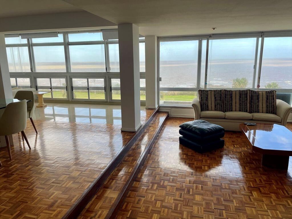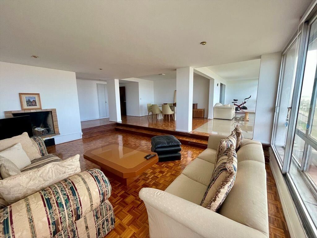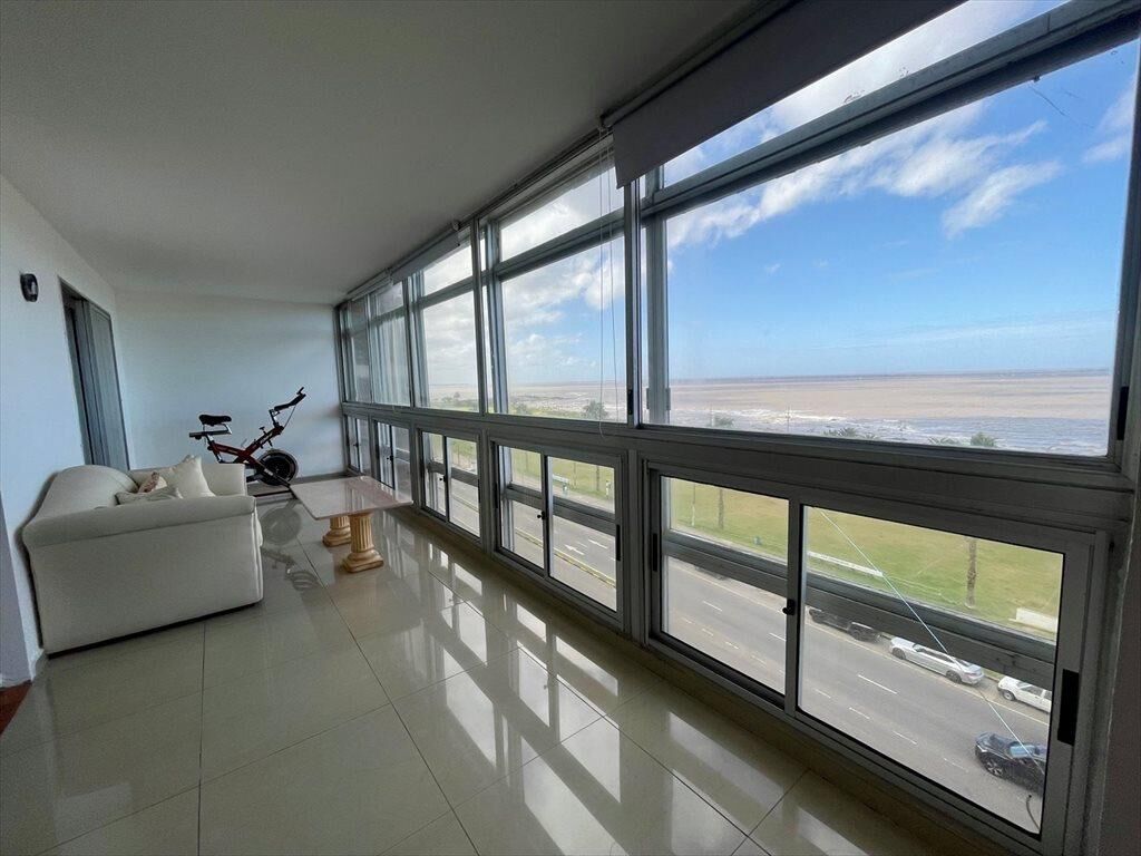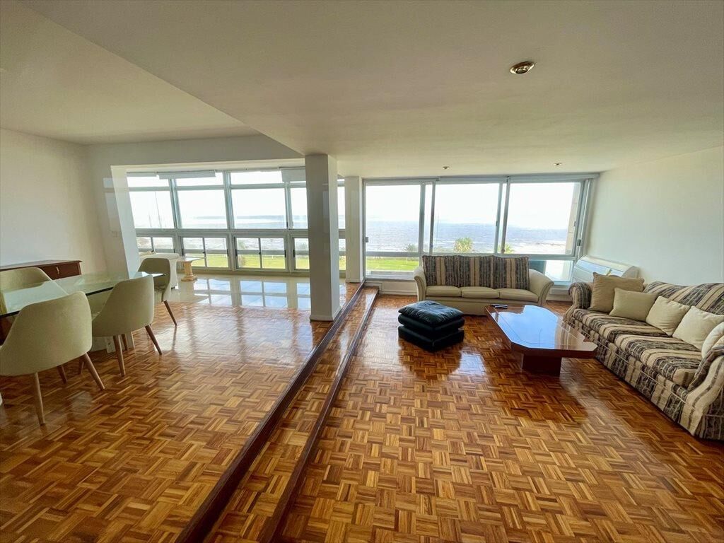 Ubicado en un piso 6, hace que sea super luminoso y soleado. Living y comedor separados por desnivel. Estufa a leña. Grandes ventanales que generan una vista impactante de la Rambla. Originalmente había una terraza de 17m2, la cual se integró a la recepción. Doble circulación. Cocina hecha a nuevo con área de estar o comedor diario. Gran cantidad de placares. Terraza lavadero, dormitorio de servicio con baño.