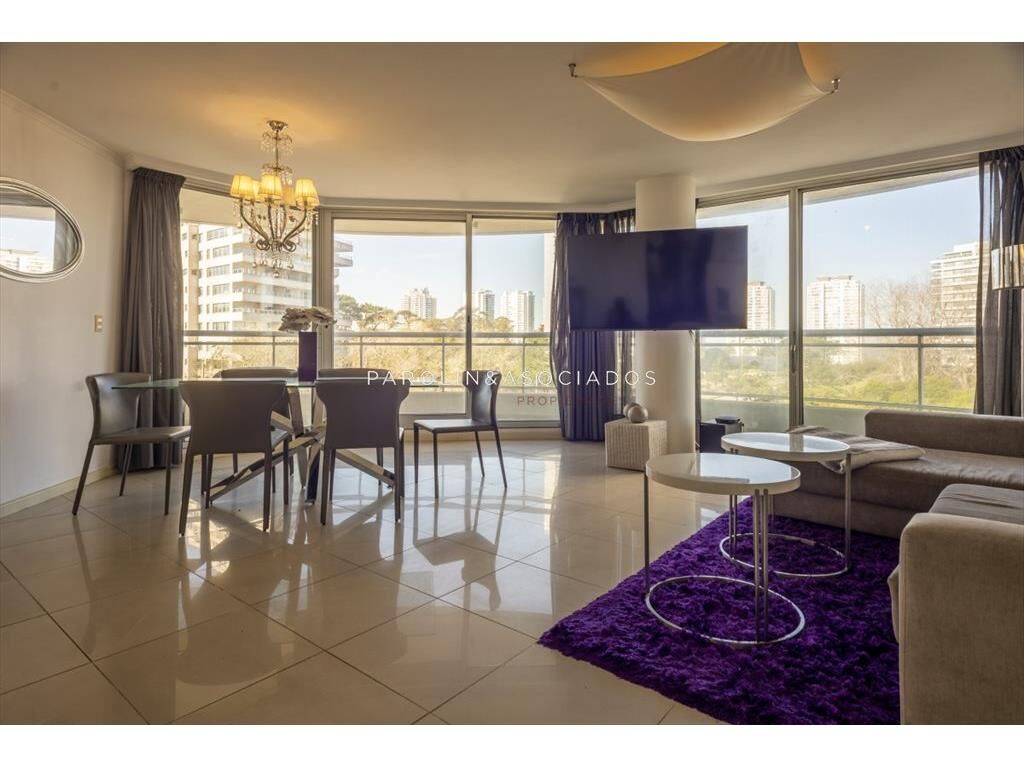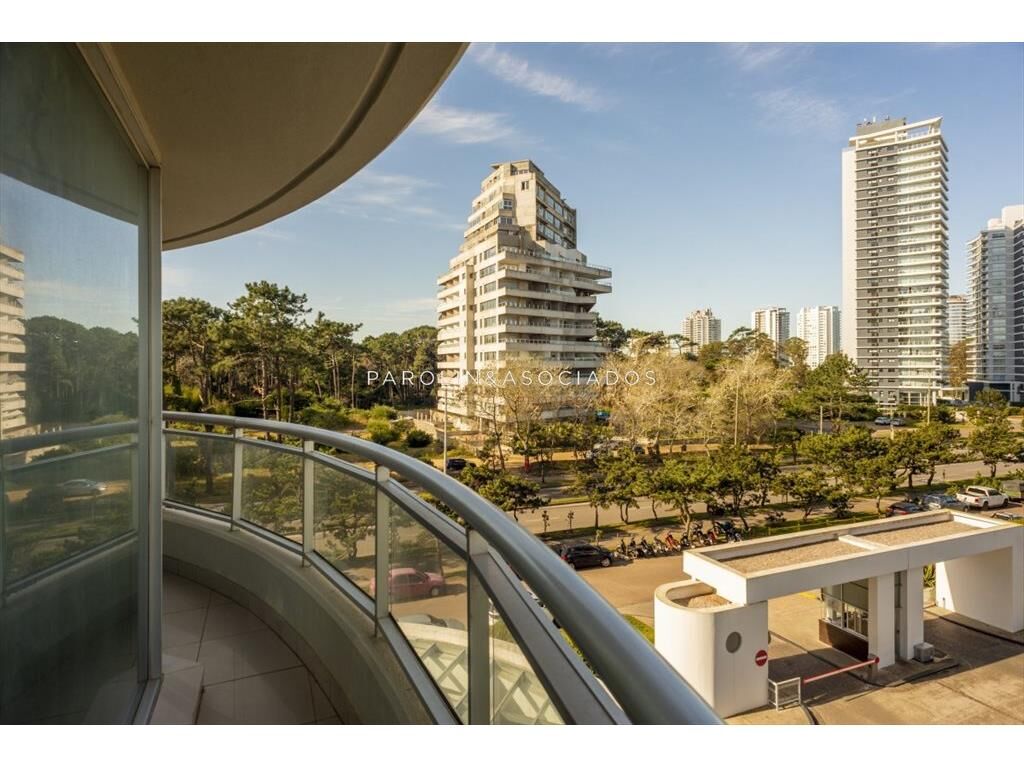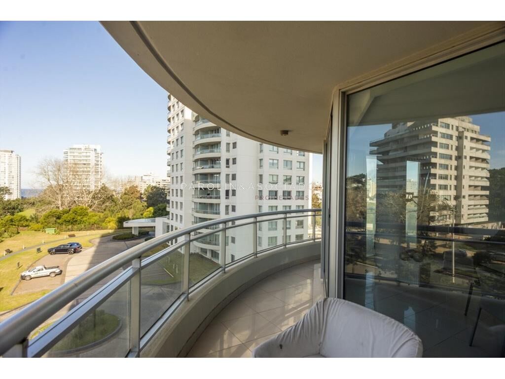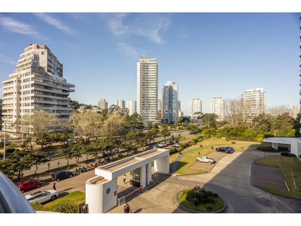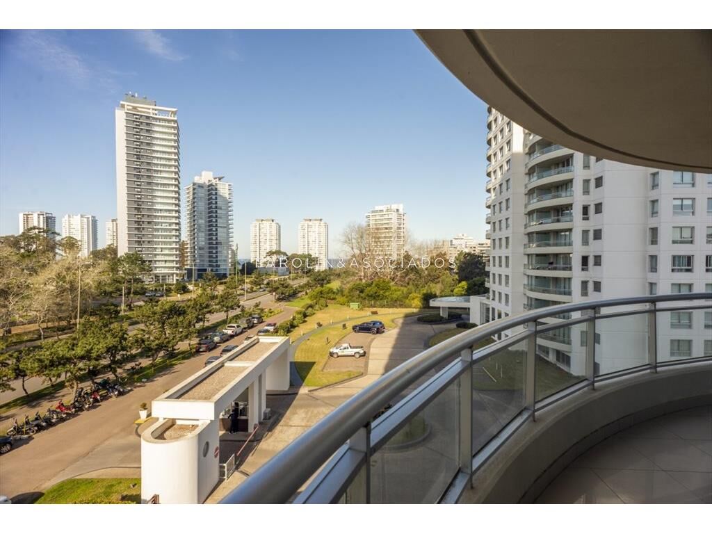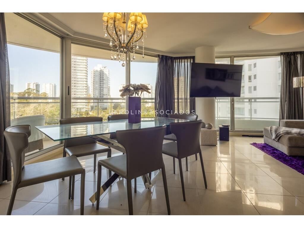 Se ofrece una impecable planta con tres dormitorios en suite, además de una dependencia con baño completo, o bien, cuatro dormitorios en suite. La propiedad cuenta con un amplio living-comedor que tiene acceso a una terraza con vista parcial a la playa Brava. También incluye una cocina definida, lavadero y garaje. El edificio ofrece una amplia gama de servicios para el disfrute de sus residentes.