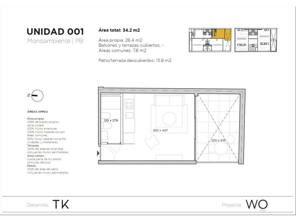 MODERNO APTO DE 25METROS A ESTRENAR CON PATIO DE 13METROS CUADRADOS.