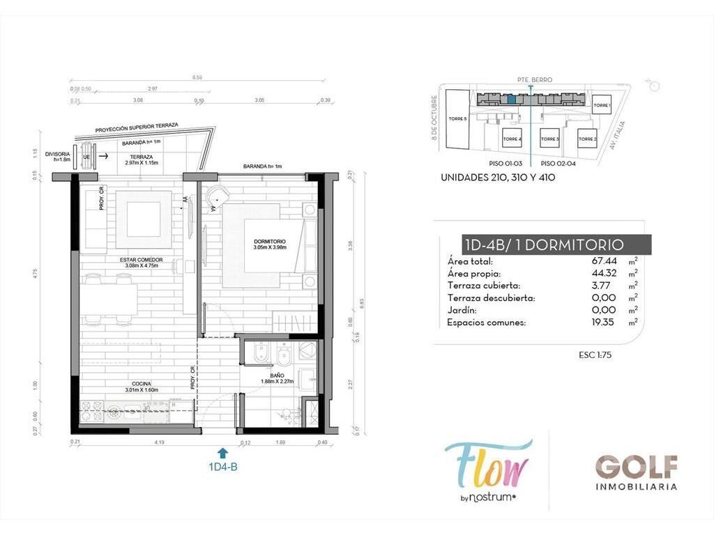 Venta apartamento de 1 dormitorio con Terraza en Tres Cruces El apartamento cuenta con: - Living Comedor - Cocina Integrada - 1 Dormitorio - Baño Completo - Terraza Dentro de sus principales amenities podemos destacar: – Previsión para portería – Ingreso con tarjeta magnética – CCTV – Unidades con cerradura digital – Meeting Room – Cowork – Barbacoa con parrillero – Gimnasio – Equipamiento fitness exterior – Juegos para niños – Mini Cancha Gastos de ocupación: 4% Comisión inmobiliaria: 3% + IVA El proyecto se encuentra amparado por la ley de vivienda promovida Ley 18.795 por lo que contará con: – Exoneración del IVA – Exoneración del ITP (2% sobre el valor de catastro) – Exoneración de IRAE/IRPF a las rentas generadas de los alquileres por 10 años según Normativa vigente al 1/9/2019 – Exoneración del Impuesto al Patrimonio por 10 años según Normativa vigente al 1/9/2019 – Exoneración del Impuesto al Patrimonio por 10 años INMOBILIARIA GOLF Afiliados a Cámara Inmobiliaria Uruguaya