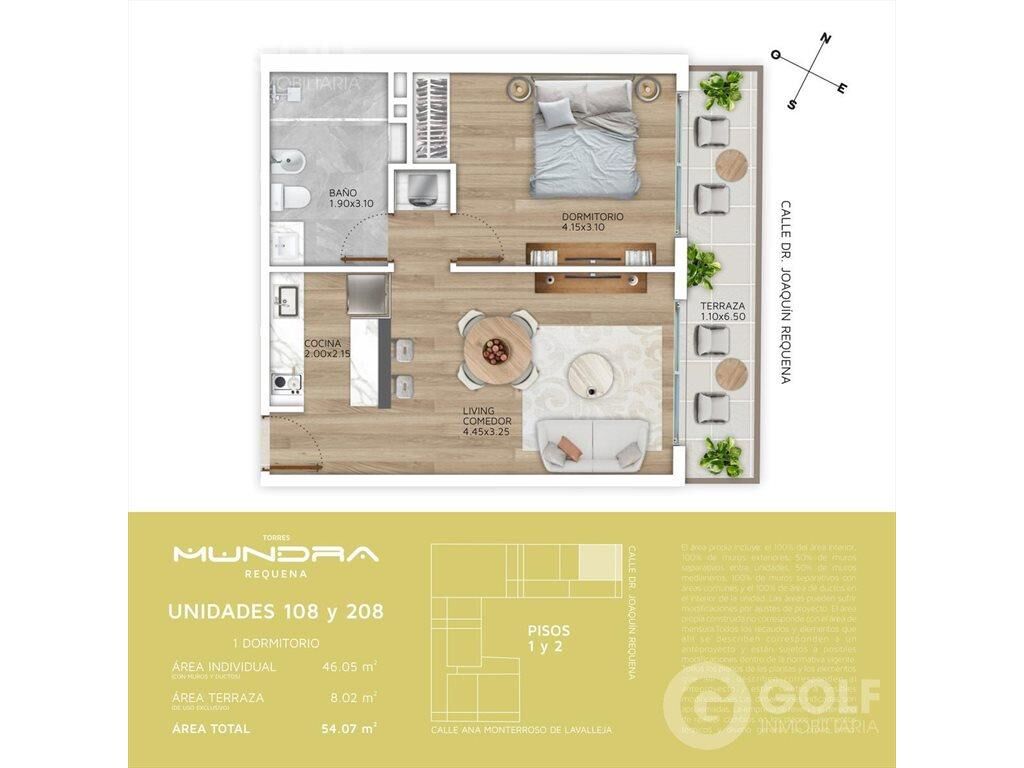 Venta apartamento de 1 dormitorio con terraza en Cordón.