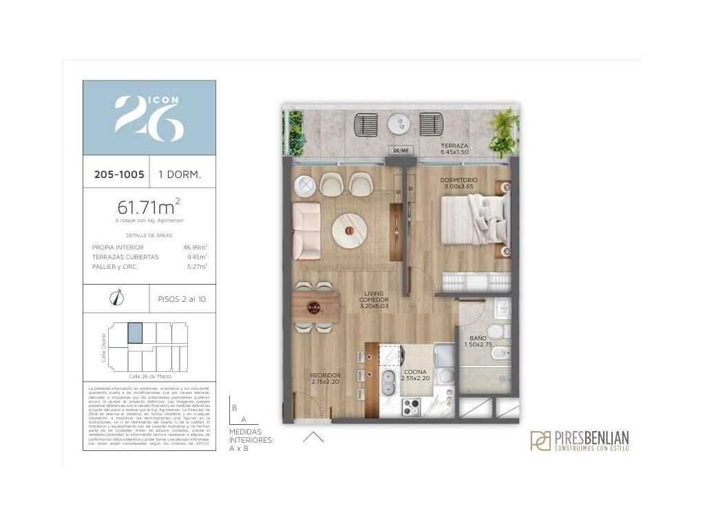 Venta de apartamento de 1 dormitorio en ICON 26, ubicado en una de las zonas mas deseables de Pocitos - 26 de Marzo y José L. Osorio.