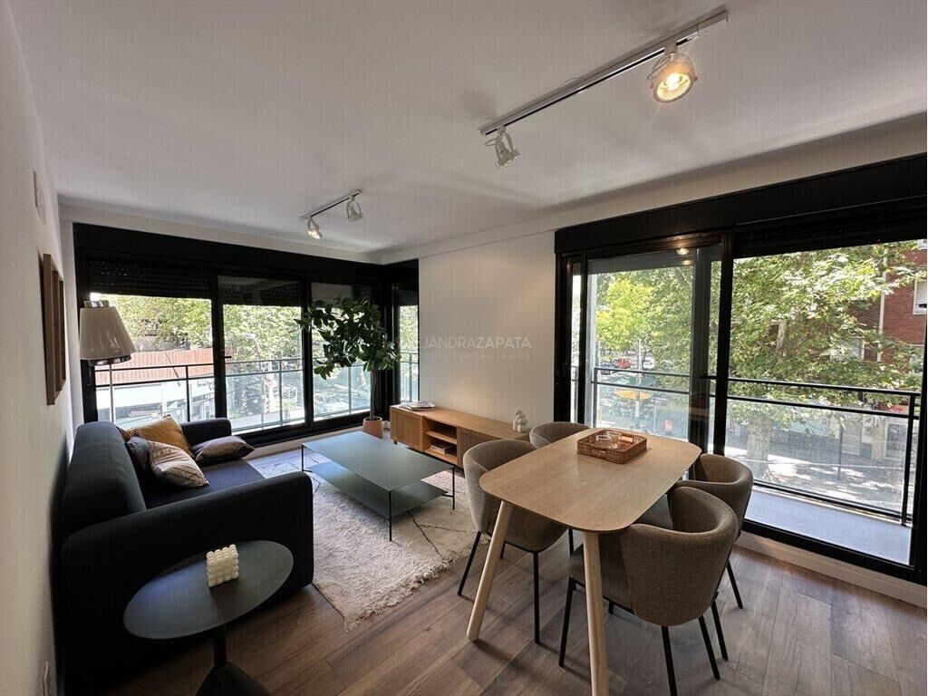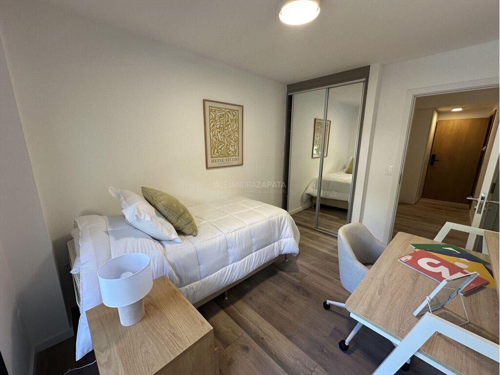 Cómodo apartamento de 2 dormitorios con terraza en L de 19m2 que recorre todo el apartamento. Hall de recibo, living comedor rodeado de ventanales con DVH que permiten mucho acceso de luz. Cocina integrada con placares sobre y bajo mesada. Ambos dormitorios tienen salida al balcón y cómodo placard, el principal es en suite. Segundo baño completo. Los pisos son vinílico flotante de muy buena calidad. Se entrega con persianas de enrollar en todas las ventanas.