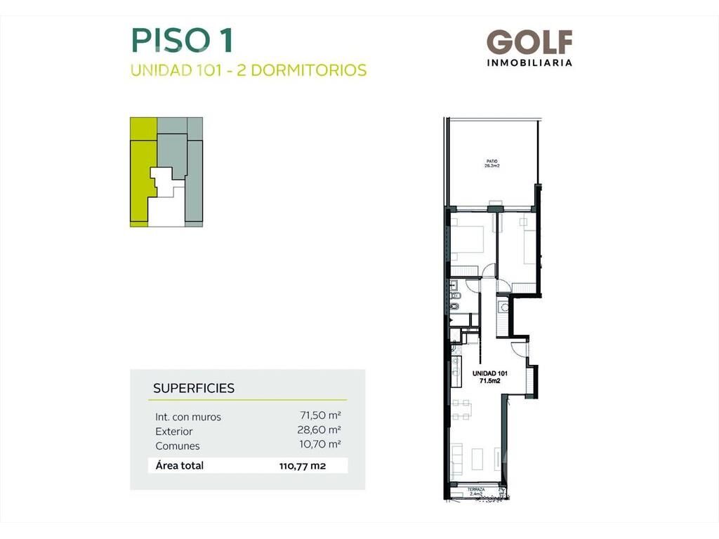 VENTA DE APARTAMENTO DE 2 DORMITORIOS CON TERRAZA EN PARQUE BATLLE. -Dormitorio con placard - Cocina integrada con muebles bajo mesada y aéreos, mesada en granito - Living comedor con ventana de aluminio con vidrio DVH y cortina de enrollar - Baño completo - Espacio para calefón y lavarropas -Terraza Previsión de eléctrica y desagüe para aire acondicionado. Ambientes integrados con excelente orientación y optimo asolamiento. Todas las unidades cuentan con terrazas o patios exclusivos. En azotea, parrillero cerrado común, equipado con mobiliario y una amplia terraza al oeste con vistas despejadas. Lavadero/Servicio. Previsión carga eléctrica para vehículos en estacionamiento. SITE CENTENARIO se emplaza sobre la Av. Dámaso Antonio Larrañaga a pocos metros de Av. 8 de Octubre, en un área urbana en constante crecimiento, excelente conexión y transporte. Es una zona residencial con muchos servicios e infraestructura, centros de salud y educativos, universidades, y áreas verdes de esparcimiento. La Avenida tiene un cantero verde central. Edificio de 12 niveles con 43 unidades, de los cuales son 32 apartamentos de 1 dormitorio y 11 apartamentos de 2 dormitorios. Orientación Este - Oeste, con ambiente integrados con óptimo asoleamiento, terrazas abiertas con muy buenas vistas despejadas al entorno. Cochera opcional desde USD16.000 Gastos de ocupación: 4% Comisión inmobiliaria: 3%+IVA BENEFICIOS TRIBUTARIOS Este proyecto está incluido en la ley de beneficios tributarios para vivienda promovida según Ley 18.795. Beneficios para el comprador final -Exento de IVA en el precio de Compra -Exoneración de IRPF/IRAE durante 10 años -Exoneración de Impuesto al Patrimonio -Exoneración de ITP aplicable en la primer compra INMOBILIARIA GOLF Afiliados a Cámara Inmobiliaria Uruguaya