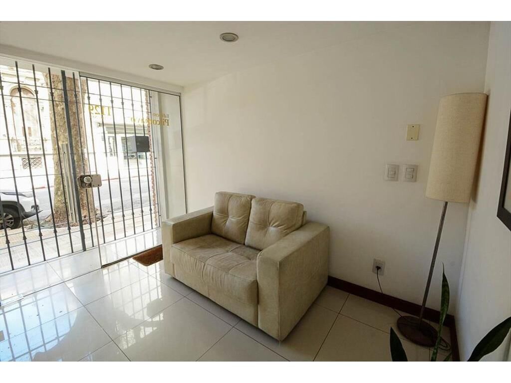 El edificio cuenta con doble puerta para su ingreso, una de reja y otra de vidrio. Y tiene un pequeño hall con sillón y ascensor.
