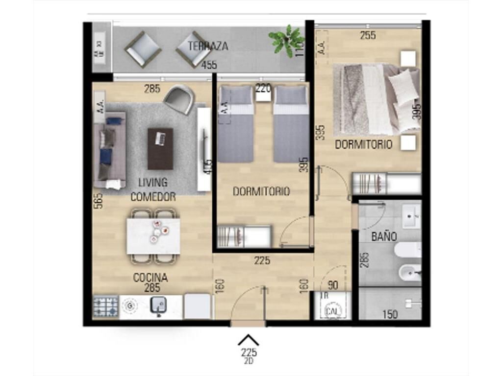 Apartamento unidad 225 en el segundo piso con orientación Norte.