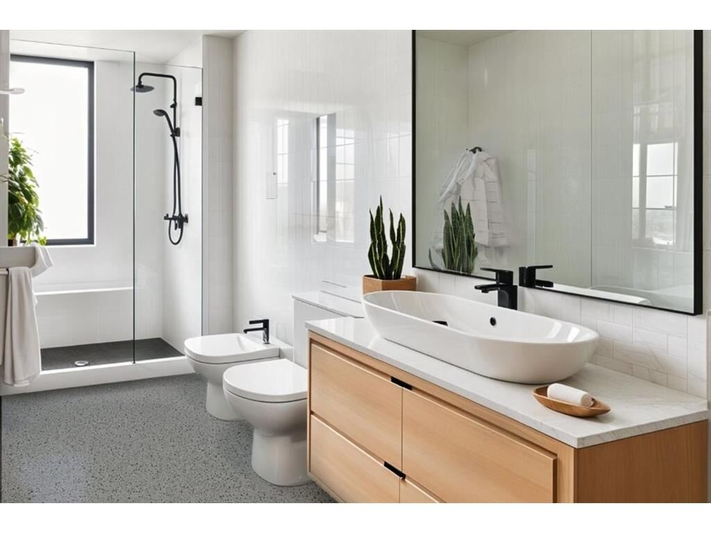• Baños: porcelanato en pisos, mueble con bacha de apoyo incluido.