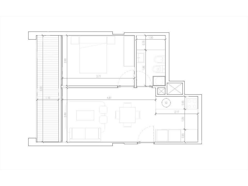 Living comedor con terraza, cocina integrada, 1 dormitorio y 1 baño completo.